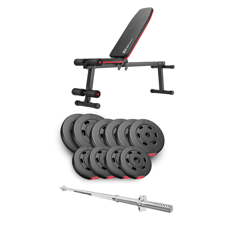 Набор Premium 59кг со штангой и скамьей HS-1010 Pro - идеально подобранный комплект с функциональной лавкой и наилучшим сочетанием количества и веса дисков, чтобы организовать дома полноценный спортзал для силовых тренировок.
