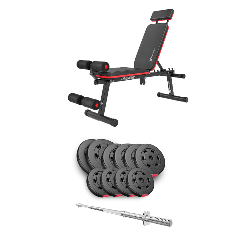 Набор Premium 59кг со штангой и скамьей HS-2040 HB - идеально подобранный комплект с функциональной лавкой и наилучшим сочетанием количества и веса дисков, чтобы организовать дома полноценный спортзал для силовых тренировок.