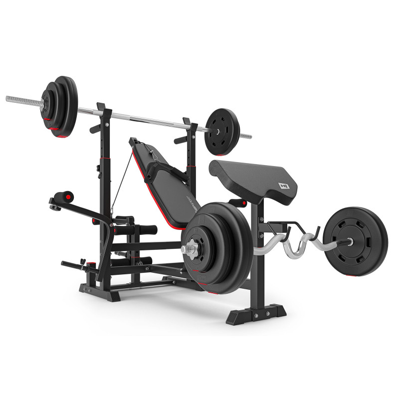 Благодаря тщательно подобранной конфигурации и высококачественным компонентам этот набор оценят как начинающие, так и продвинутые пользователи. Диски для штанги покрыты несколькими слоями ABS-пластика, чтобы при падении они не повредили пол.