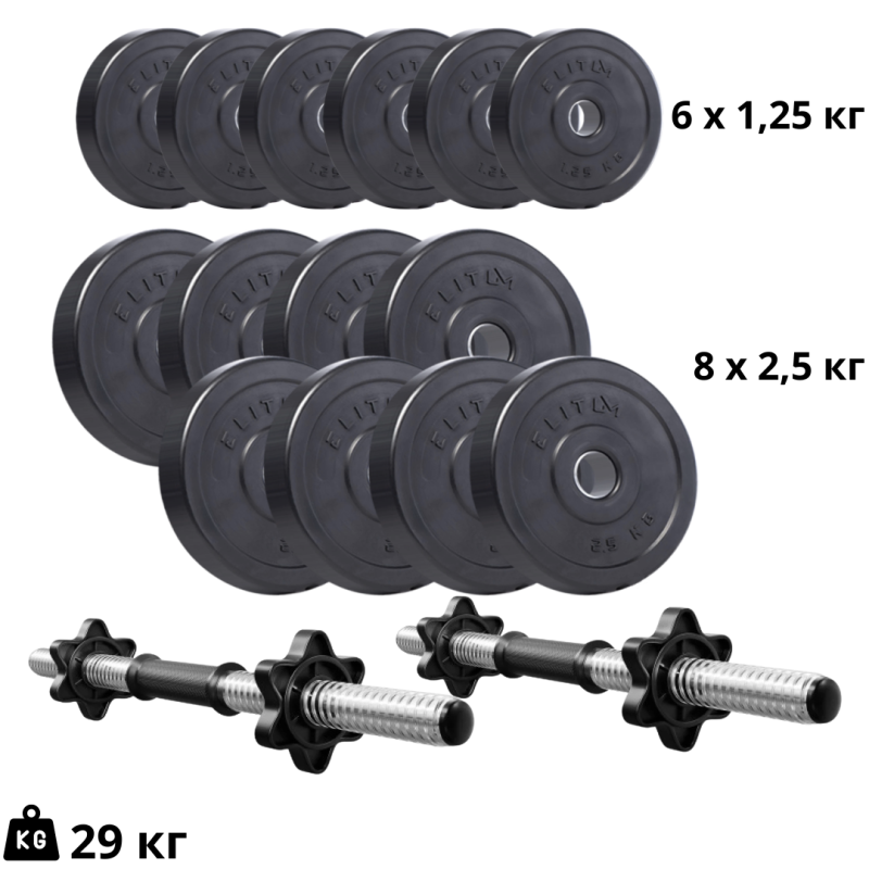 Набор композитных дисков Elitum Titan 29кг для гантелей и штанг + 2 грифа