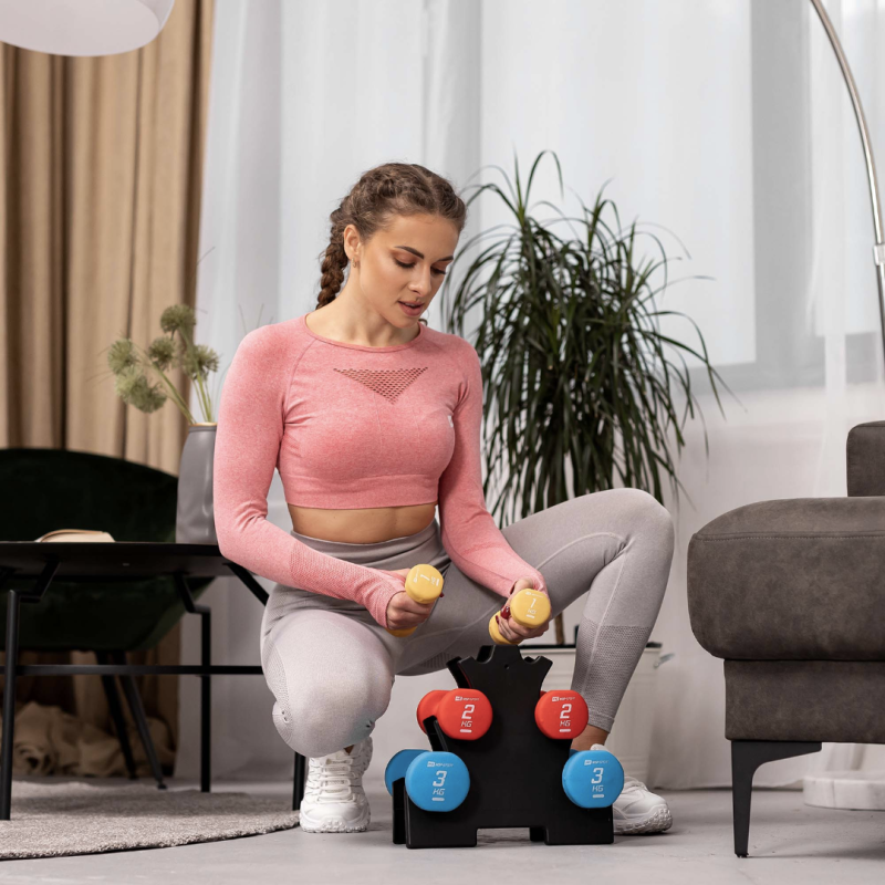 Набор круглых фитнес гантелей HS-V120DRS с подставкой 12кг разноцветные