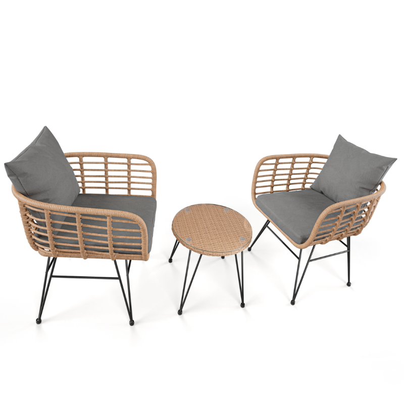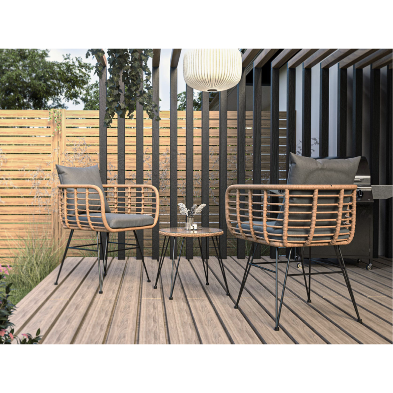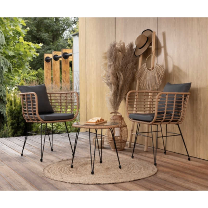 Утонченность, качество, надежность, эстетика - это ключевые характеристики, которые определяют высокий уровень мебели Di Volio Savio, отличающийся интересным дизайном кресел, в основе которого лежит форма полукокона, в котором частично встроенное сиденье значительно повышает комфорт отдыха. Конструкция стола и стульев на террасе представляет собой стальной каркас, оплетенный вручную высококачественным техноратангом, который, в отличие от натуральных волокон ротанговых, не портится от влаги и солнечных лучей. Благодаря компактным размерам комплект садовой мебели Savio впишется в любое, даже самое маленькое помещение. В комплекте со стульями и журнальным столиком вы также найдете удобные подушки, которые идеально подходят практически к любому оформлению сада или террасы, так и в интерьере, например в гостиной.