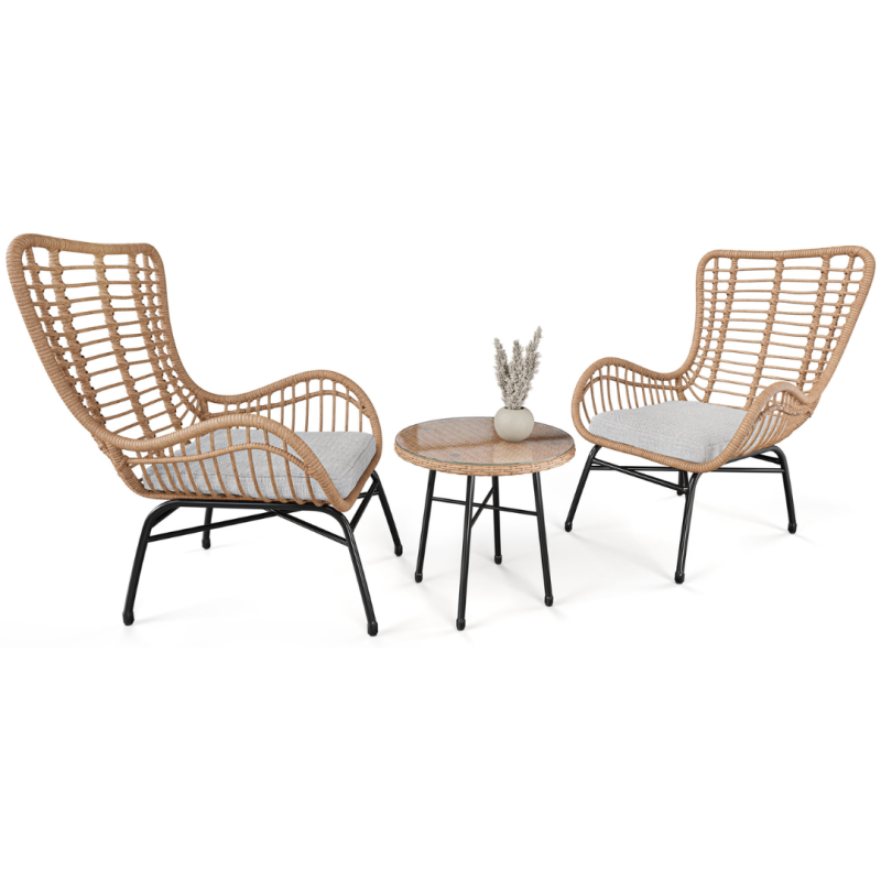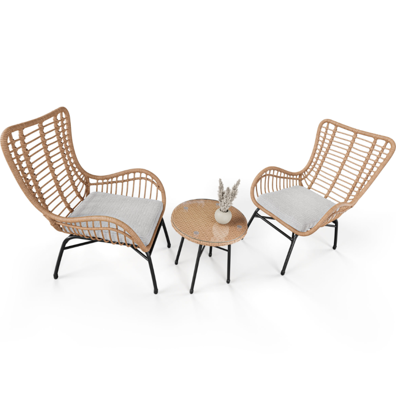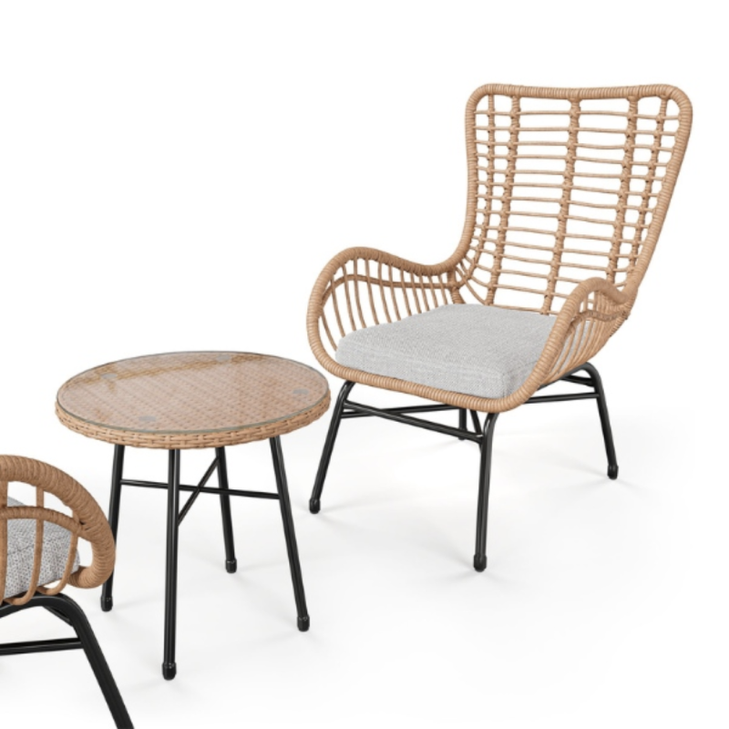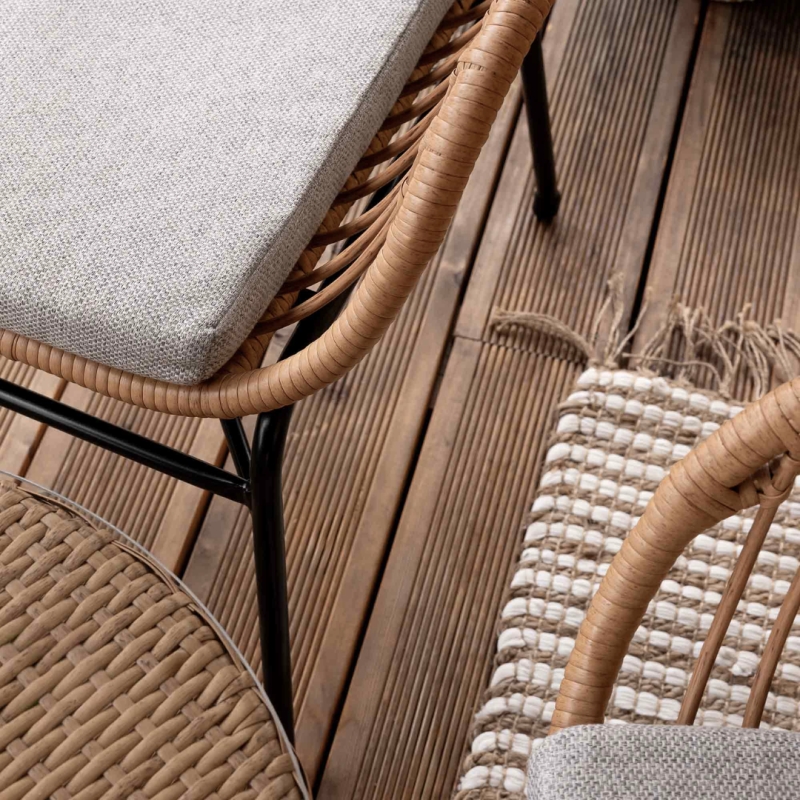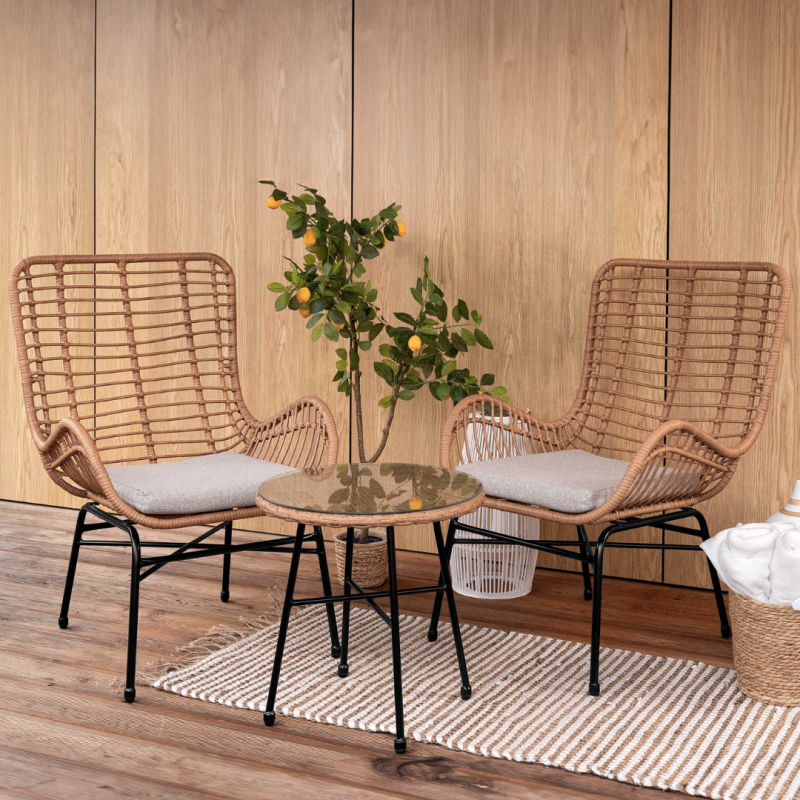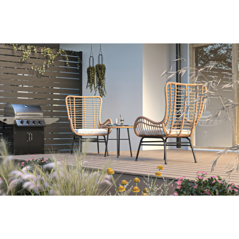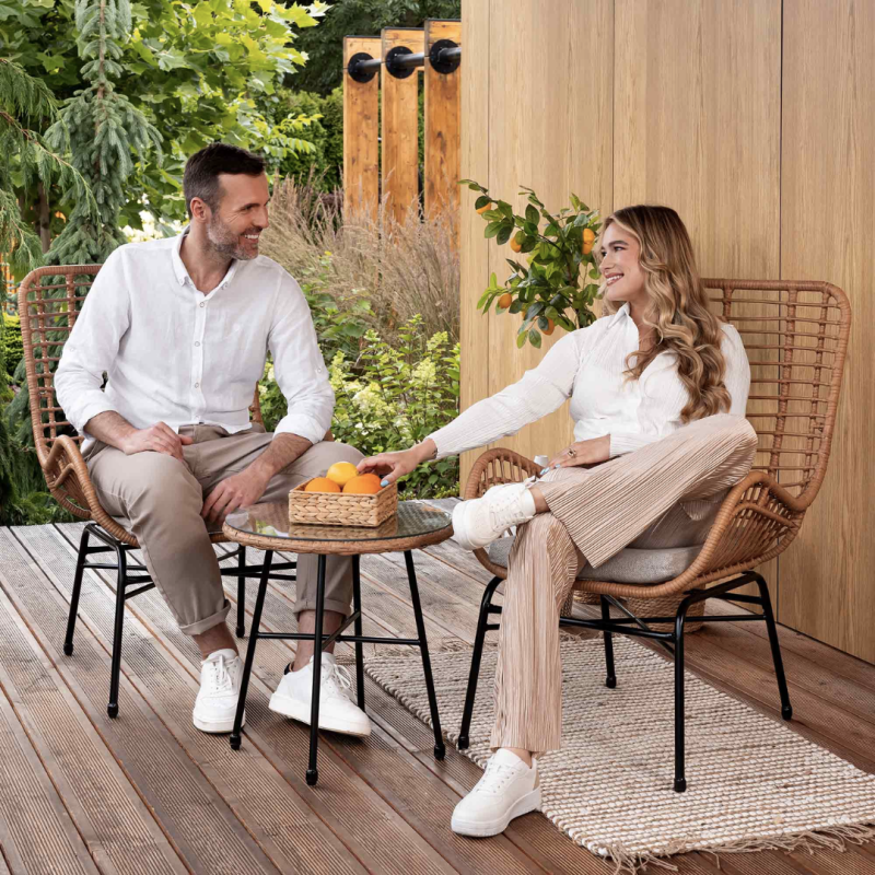 Утонченность, качество, надежность, эстетика - это ключевые характеристики, которые определяют высокий уровень мебели Di Volio Sorrento, отличающийся интересным дизайном кресел, в основе которого лежит форма полукокона, в котором частично встроенное сиденье значительно повышает комфорт отдыха. Конструкция стола и стульев на террасе представляет собой стальной каркас, оплетенный вручную высококачественным техноратангом, который, в отличие от ротанговых натуральных волокон, не портится от влаги и солнечных лучей. Благодаря компактным размерам комплект садовой мебели Sorrento впишется в любое, даже самое маленькое помещение. В комплекте со стульями и журнальным столиком вы также найдете удобные подушки, которые будут идеальным дополнением практически к любому оформлению сада или террасы, так и в интерьере, например в гостиной.