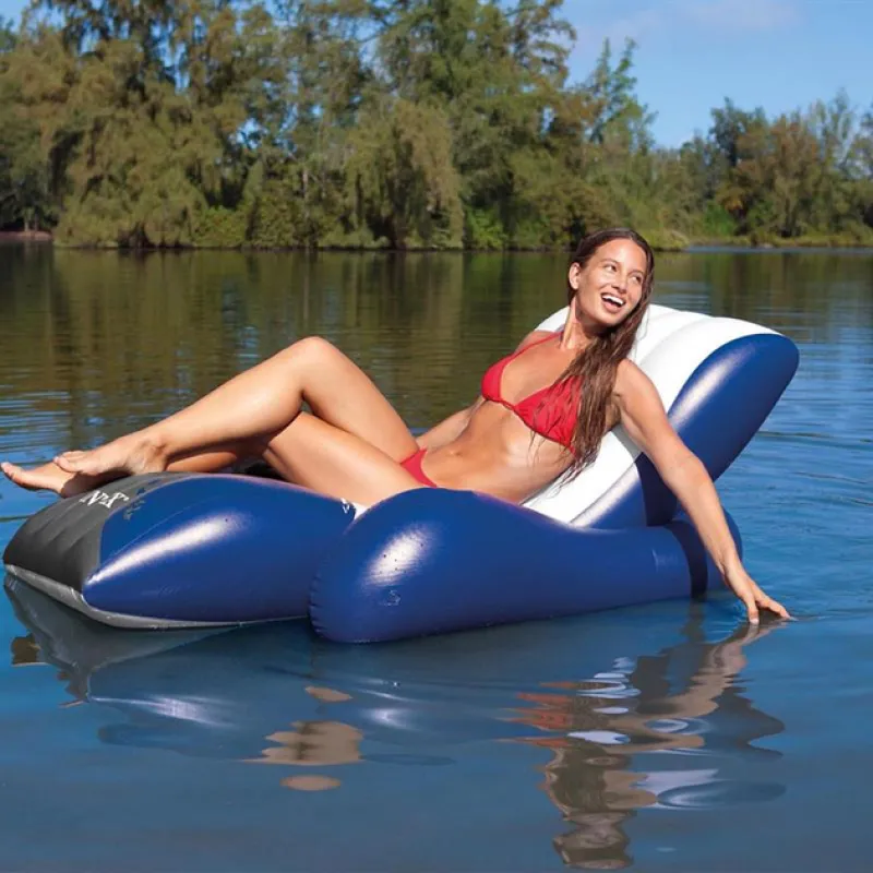 Цей оригінальний плавальний шезлонг виконує функції як пляжного крісла з високою спинкою, зручними підлокітниками й широкими сидіннями, так і матраца для плавання.