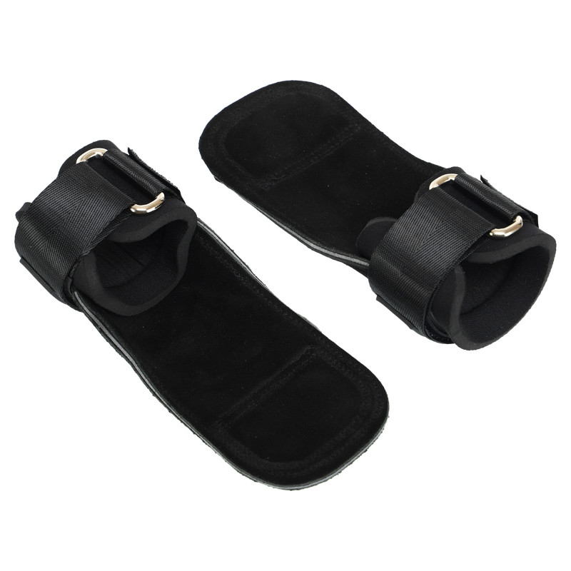 Накладки для защиты ладоней выполнены из трехслойной утолщенной кожи, способной выдержать максимальные нагрузки без потери внешнего вида и свойств. Материал очень приятный на ощупь, не натирает кожу и обеспечивает хорошее сцепление с гладкими металлическими поверхностями. С помощью накладок можно более эффективно и безопасно заниматься с гирями, штангой или гантелями. Кроме того, аксессуар используется для подтягиваний на перекладине и брусьях.