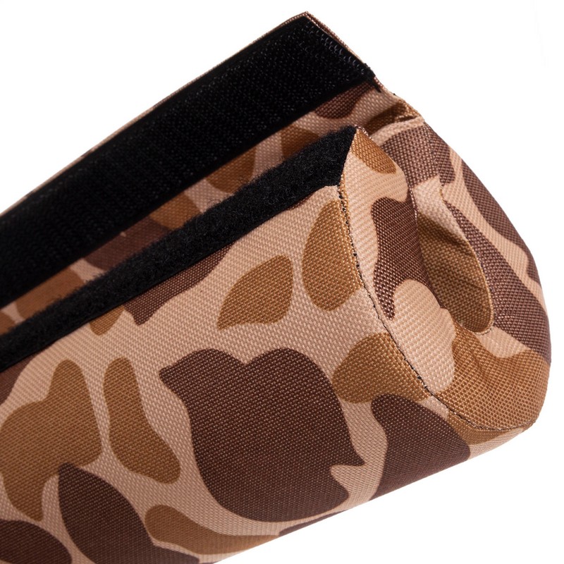 Снаружи накладка покрыта чехлом из полиэстера, который плотно облегает её. Он придаёт аксессуару дополнительную стабильность, а также защищает пену от повреждений, преждевременного износа и загрязнения. На грифе накладка фиксируется с помощью клапана на липучке, который идёт вдоль всего разреза.
