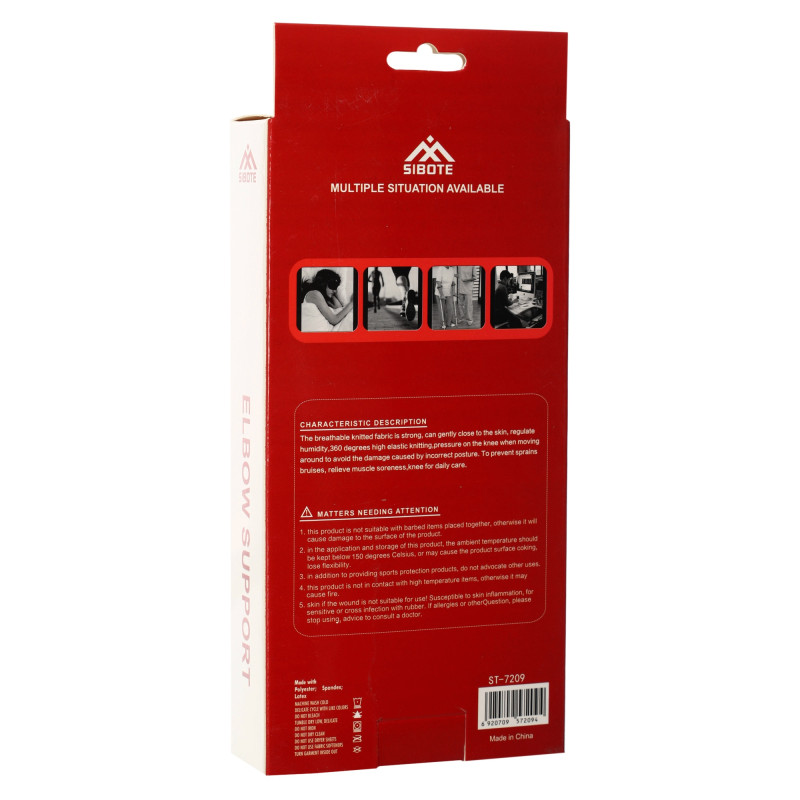 Эластичный удлиненный налокотник SIBOTE ST-7209 создан из высококачественного синтетического материала, включающего в себя полиэстер, спандекс и латекс. Это обеспечивает необходимую эластичность для того, чтобы способствовать комфортному прилеганию к коже и поддержке суставов, а также позволяет коже дышать во время носки.