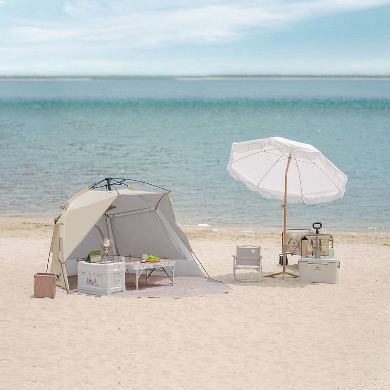 Особливості цього дивовижного намету включають захист від сонця на рівні SPF 50+, що гарантує надійний захист від шкідливих сонячних променів. Ви можете насолоджуватися відпочинком на свіжому повітрі, не турбуючись про згубний вплив ультрафіолетового випромінювання.