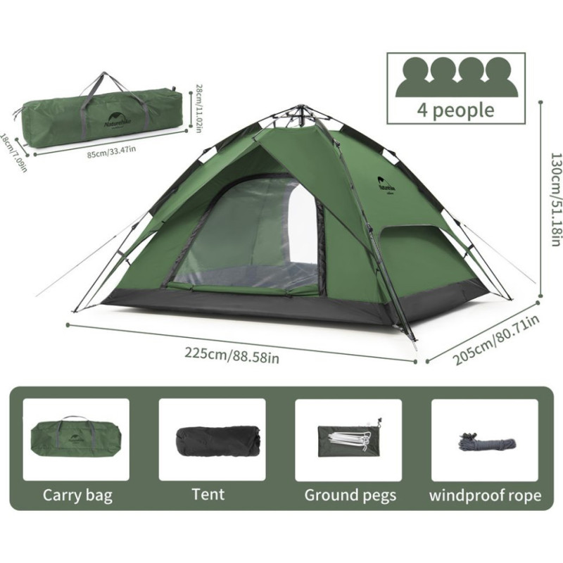 Опис чотиримісного автоматичного намету Naturehike NH21ZP008, темно-зелений