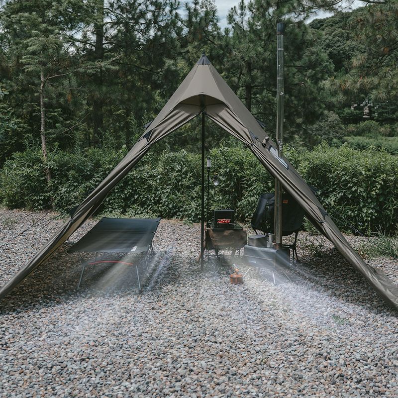 Унікальність цього намету полягає у можливості встановлення дров'яної печі завдяки отвору для димоходу. Це робить модель ідеальним рішенням для холодних умов і дозволяє створити затишну атмосферу всередині намету.