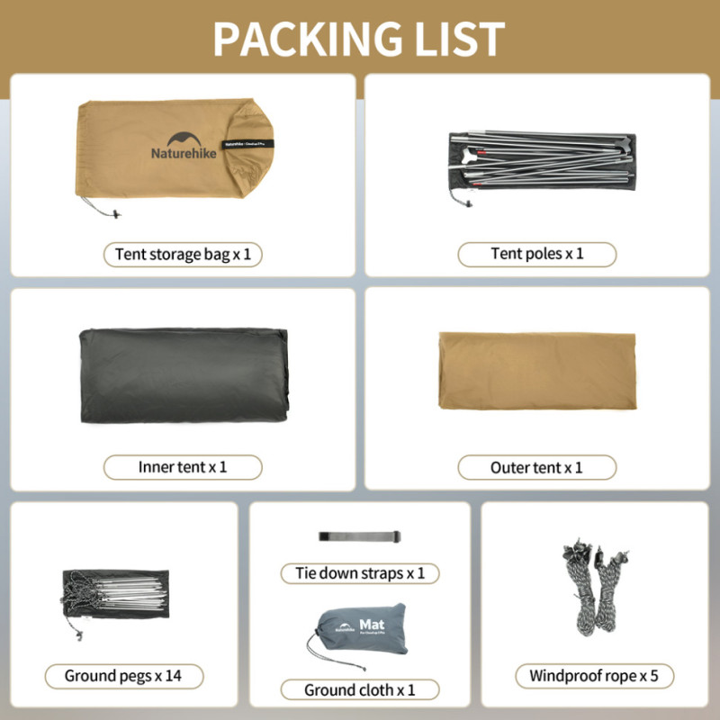 Опис надлегкого двомісного намету Naturehike Cloud Up Pro CNK2350WS020, коричневого: