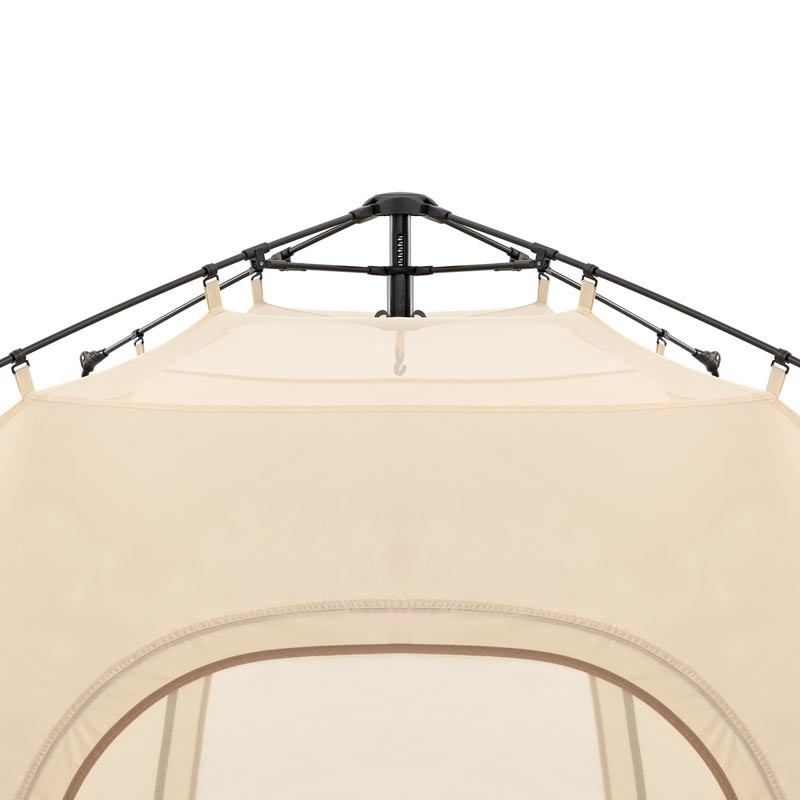 В основі конструкції тенту чотири щогли, які розміщені по куткам, зібрані у верхній частині. Розкласти намет можна одним рухом, процес закріплення здійснюється за допомогою відтяжок.