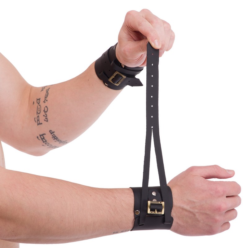 Напульсники изготовлены из натуральной кожи. Они фиксируются на руках с помощью ремешков. Степень фиксации можно регулировать.