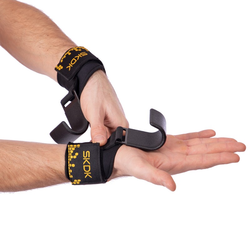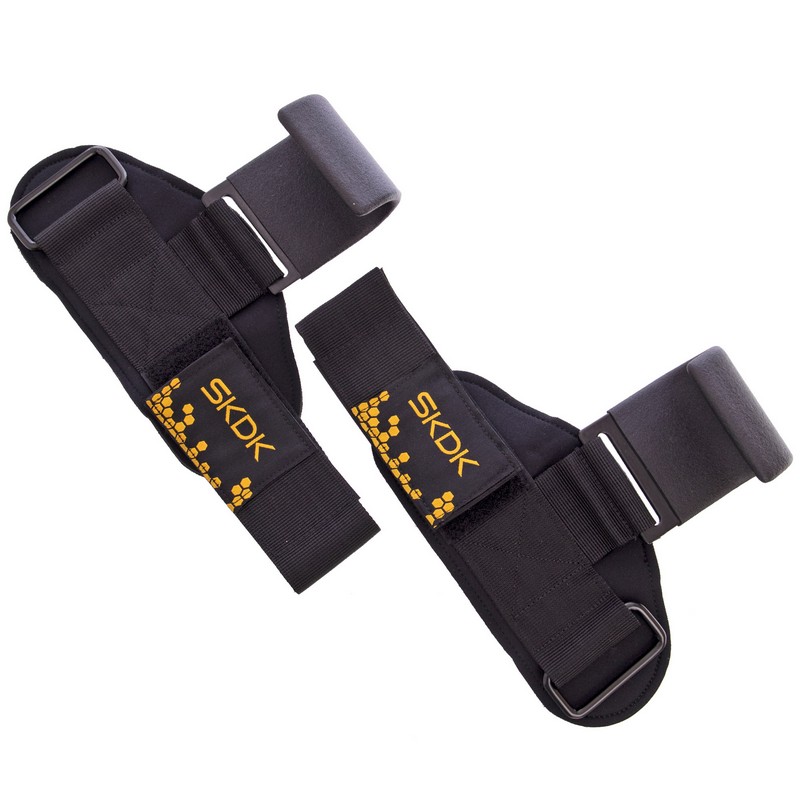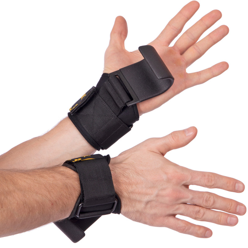 Напульсники с крюками предназначены для силовых тренировок. Напульсники изготовлены из полиэстера, на запястье застегиваются на липучку. Металлический крюк в конструкции можно зацепить за перекладину или штангу для снижения нагрузки на пальцы.