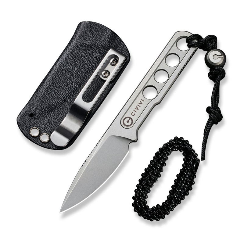 У комплекті з ножем є темляк з фірмовою бусиною CIVIVI. Ніж додатково оснащений кліпсами.