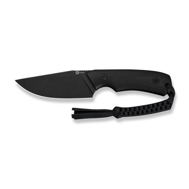 - Клинок з нержавіючої сталі Sandvik 14C28N. Це високоякісна шведська марка з високою корозійною стійкістю та твердістю 58–60 HRC. Метал легкий в обслуговуванні, а обробка методом галтування з чорним покриттям приховує відбитки пальців.