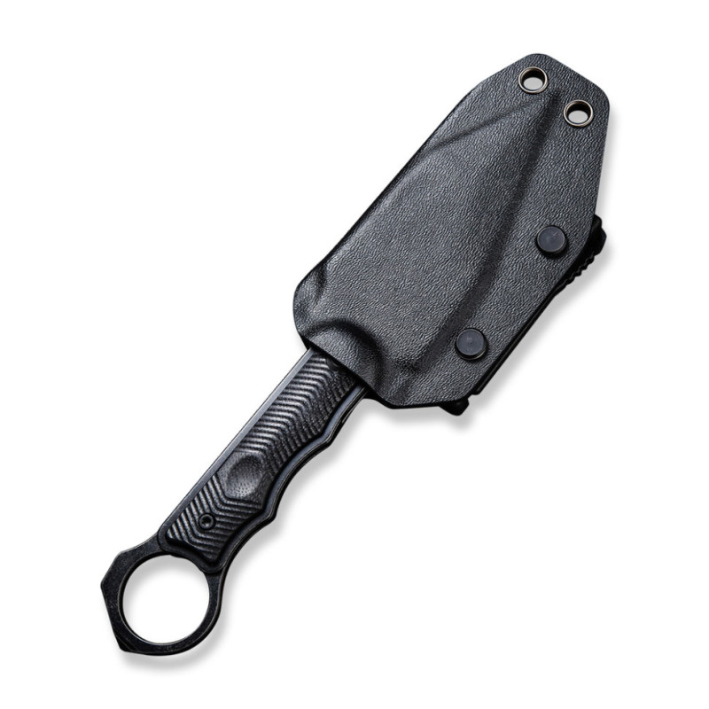 Попри фіксовану конструкцію вагою 138.2 грами, ніж зручно носити завдяки піхвам із жорсткого кайдекса. У піхвах передбачено отвір для зливу води та поясний T-подібний затискач, спроєктований Бобом Терзуола (Bob Terzuola).