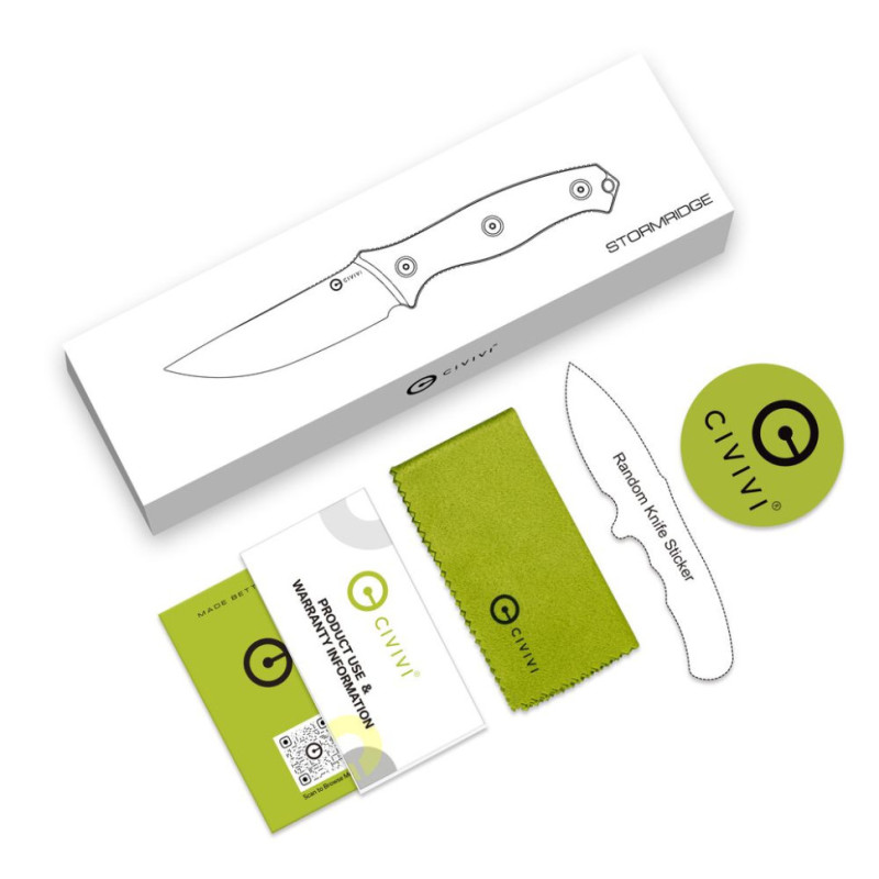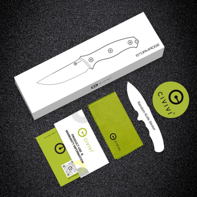 Елегантний ніж Civivi Stormridge віддалено нагадує перський кинджал, зокрема завдяки довгому клинку форми straight back. Модель розроблена спеціально для експлуатації у польових умовах з упором на міцність та довговічність конструкції. Проте виробник не забув і про естетичну складову, обробивши поверхню клинка методом галтування (stonewash) з покриттям пісочного відтінку.