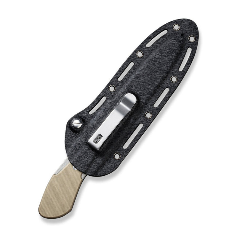 Навіть попри нескладаний формат інструмента, дизайн продуманий у такий спосіб, що виріб не викликає проблем у транспортуванні. Все завдяки мінімальній вазі, що дорівнює 72,4 г, і тонкій конструкції (товщина клинка становить 3 мм, а товщина руківʼя не перевищує 6,5 мм). Цьому також сприяють піхви з кайдекса.