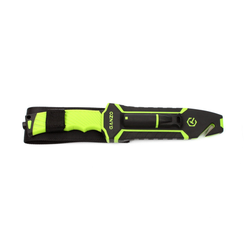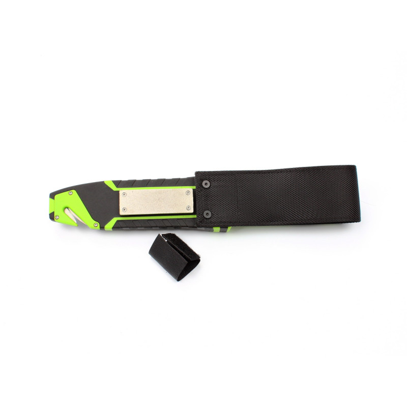 Рукоятка відмінно пристосована для комфортної роботи. Вона зроблена з термопластика з великим запасом міцності, а поверхня матеріалу — прогумована, щоб ніж не вислизав з рук. Основний колір рукоятки — чорний, але окремі елементи зроблені яскраво оранжевими, щоб клинок був добре помітним на різних поверхнях. А щоб знайти його не склало труднощів навіть у темряві, на рукоятці є пара невеликих світлонакопичувальних елементів. В якості додаткового інструменту, на торці рукоятки є невеликий склобій.
