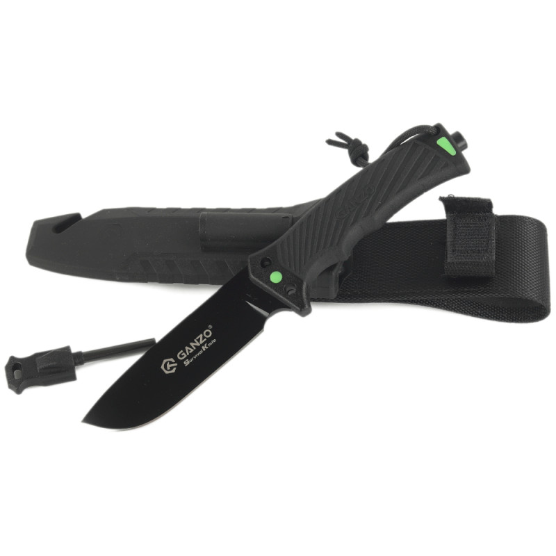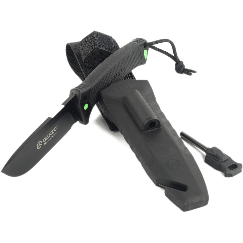 У комплект з ножем входять фірмові піхви, які мають доповнення у вигляді невеликого кресала, стропоріза і компактної пластини, що виконує функцію Точила, якщо під рукою немає повноцінного точильного каменю. Модель Ganzo G8012V2-BK має отвір під темляк і продається разом з паракордом. Це синтетична мотузка з особливим плетінням, яке підвищує міцність матеріалу. Темляк можна використовувати як додатковий варіант для фіксації вироби на поясі або сумці.
