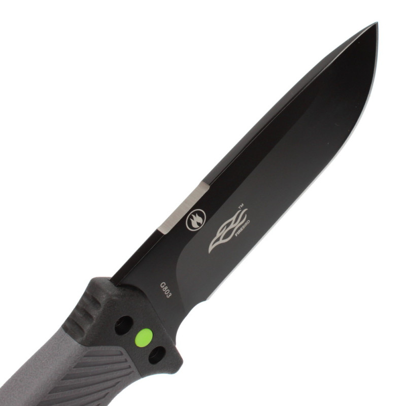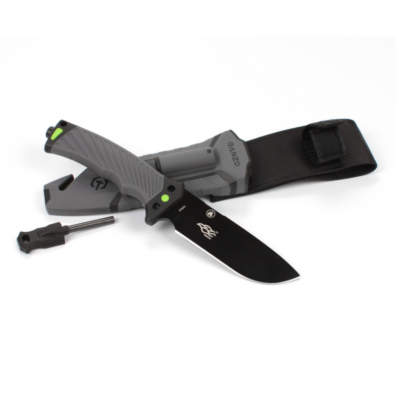 Простий і надійний туристичний ніж Ganzo G803 з фіксованим клинком відмінно підійде для активного відпочинку на природі. Він досить міцний для виконання різних трудомістких завдань і довго залишається гострим. Ці особливості обумовлені застосуванням для виготовлення клинка нержавіючої сталі марки 8Cr13 і його подальшої загартування до ~58 HRC.