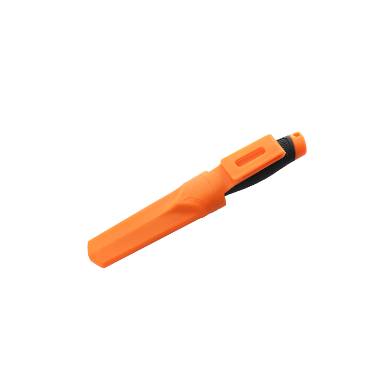 Ергономічна рукоять зроблена з матеріалу ПП+ТПР. ТПР або термопластична гума – це синтетичний полімер, що володіє властивостями гуми і пластика. В рукавичках він використовується як шар, що захищає руку від ударних впливів – здатний поглинати і розсіювати енергію удару. Працювати таким ножем безпечно і зручно. Піхви поліпропіленові.