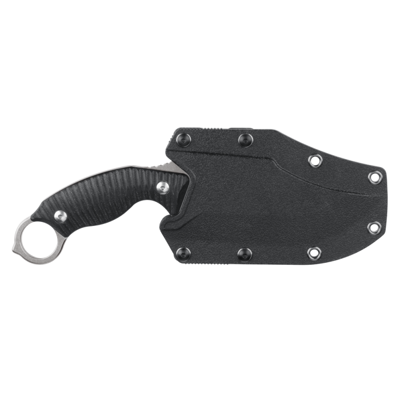 Рукоять виготовлена з склотекстоліти G10, який являє собою суміш склотканини і епоксидних смол. Це досить міцний і стійкий до пошкоджень матеріал, добре переносить вологу, відмінно піддається фарбуванню. До того ж, G10 стійкий до впливів високих температур. Рукоять з таким матеріалом у складі буде мати довгий термін служби і добре протистояти впливу різних факторів.