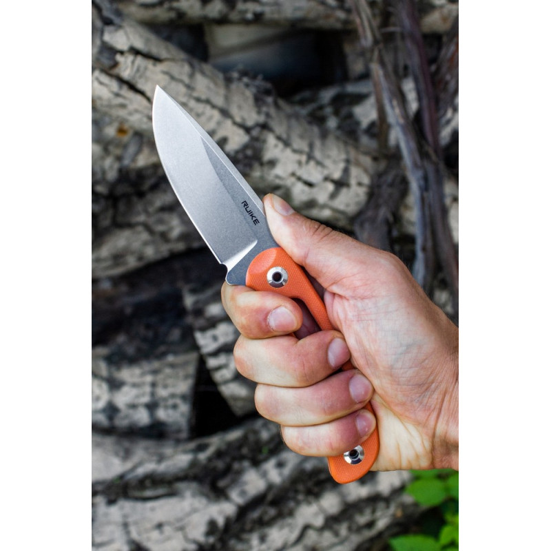 Клинок ножа Ruike F815 виготовляється з хромистої сучасної сталі марки 14С286N Sandvik. Створювався цей метал спеціально для того, щоб використовувати його при виробництві ножових ліз. Це означає, що інженери фокусувалися на поліпшення показників твердості, гостроти клинка та стабільності ріжучої кромки. А завдяки високому вмісту хрому, лезо не схильне виникненню корозійних процесів.