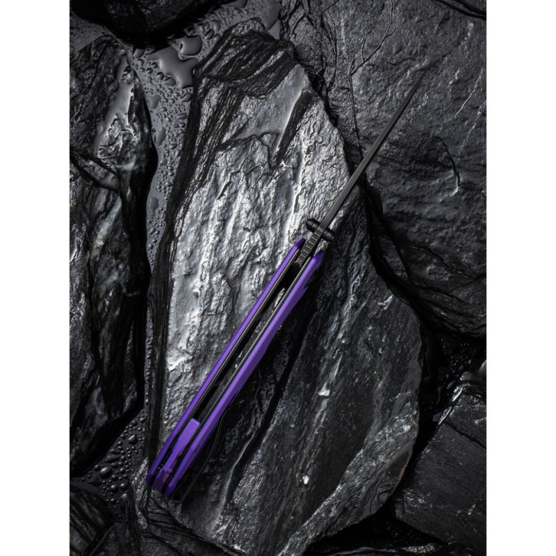 Довжина клинка складає 88 мм. Він легко виймається з руківʼя одним рухом завдяки керамічним кульковальникам в осьовому вузлі. Для цього достатньо натиснути на плавець фліпера або на двосторонній шпеник. У відкритому положенні клинок фіксується замком liner lock. На 3-міліметровому обуху є упор для великого пальця.