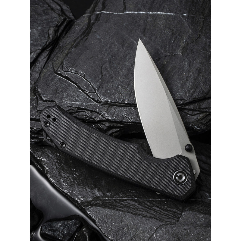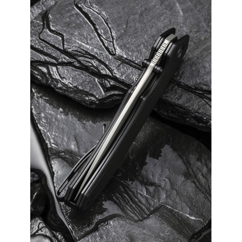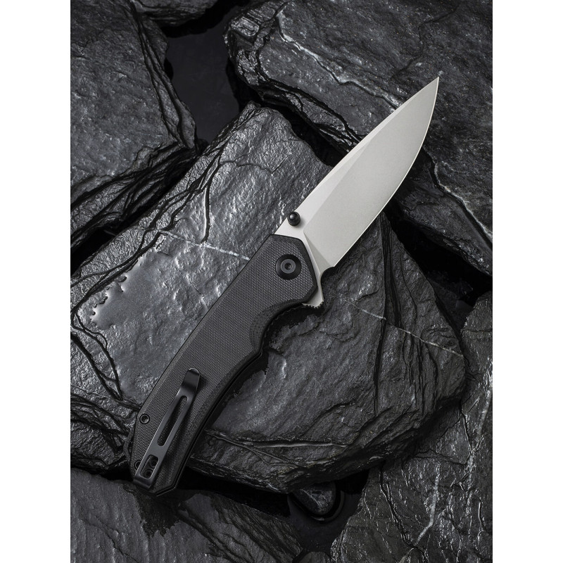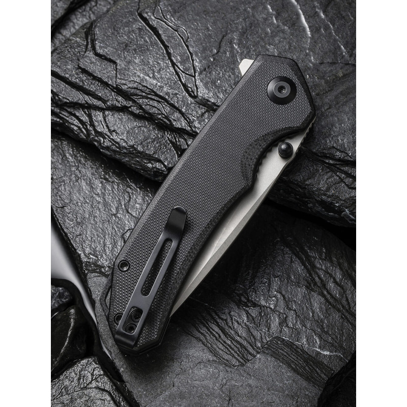 Рукоятка моделі зроблена із застосуванням склотекстоліту G10. Міцний та легкий матеріал із скловолокна та синтетичної смоли. Легка текстура чудово лежить у руці та забезпечує достатнє захоплення. Ніж має кліпсу, за допомогою якої легко закріпити на рюкзаку, сумці, підвісити до кишені або на поясі.