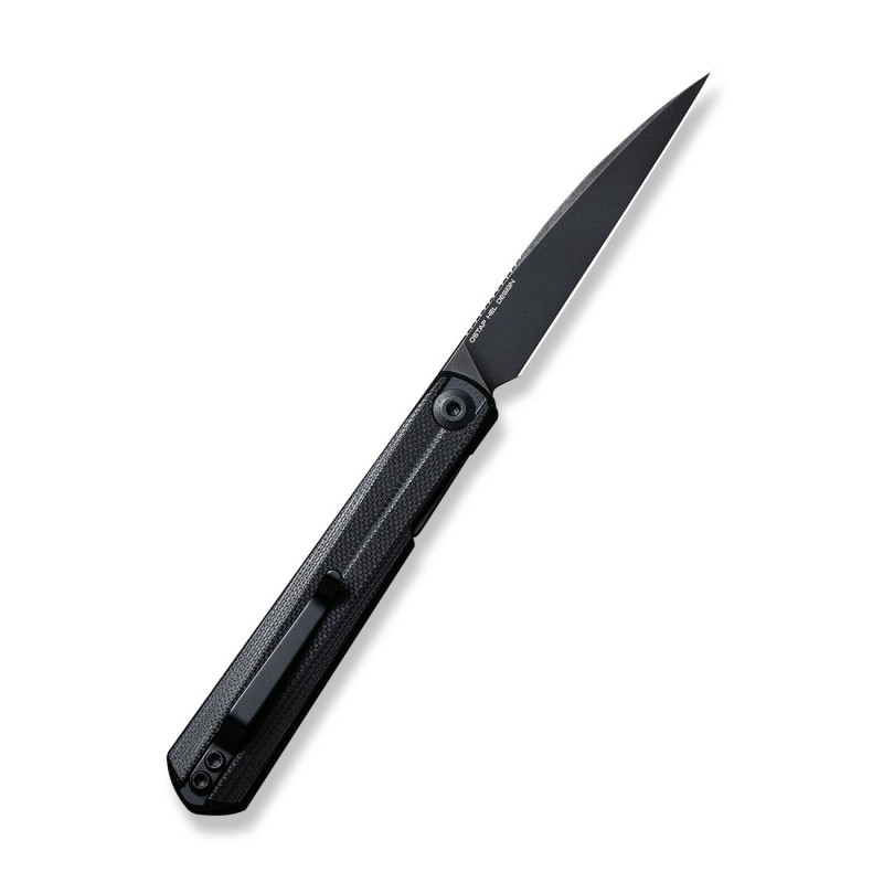 Лезо ножа виконано зі сталі Nitro-V, додатково вкрито Blackwash. Лезо розкривається плавно, осьовий вузол виконаний на керамічному шарикопідшипнику. Ручка сталевого ножа з накладкою з матеріалу G10. Оснащений замком Liner-Lock.
