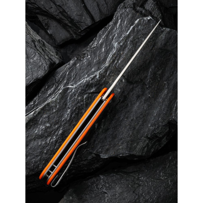 Civivi KwaiQ — це ніж-фліпер, який відкривається натисканням на плавець. Підшипники з кераміки в осьовому вузлі забезпечують миттєве відкриття, а замок liner lock намертво фіксує клинок, що дозволяє виконувати ним будь-які маніпуляції ефективно та безпечно.