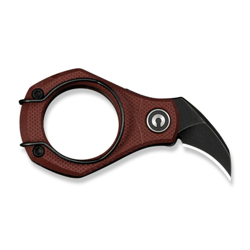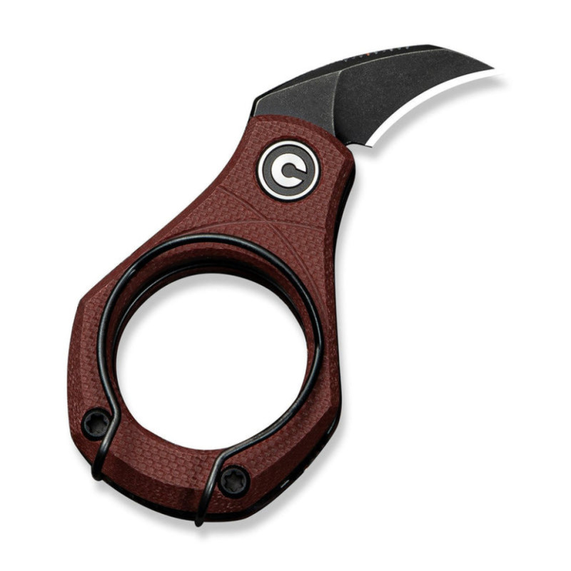 Попри мініатюрні розміри (лише 57,4 мм у закритому положенні), модель не позбавлена ергономіки, за яку відповідають шорсткі накладки з G10 на руківʼї. У конструкції також є кліпса на кишеню, яку можна використовувати як затискач для грошових купюр або кільце для носіння ножа як брелок.