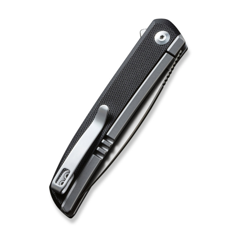 Довжина клинка сягає 88.2 мм. Він виготовлений зі шведської сталі 14C28N — нержавіючого металу з близько 14% хрому у складі. Важливе значення має включення вуглецю близько 0.6%, який надає сталі еталонну міцність. За прикладом більшості інструментів бренду Civivi, клинок цієї моделі піддався піскоструменевій обробці (bead blasting), що надає поверхні металу рівномірну матовість.