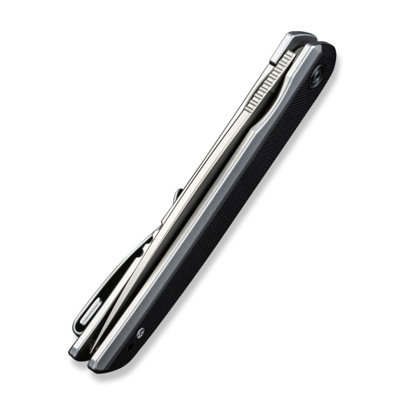 Основу руківʼя складає нержавіюча сталь, інкрустована вставками зі склопластику G10 по обидва боки конструкції. Матеріал має трохи шорстку поверхню, тому хват є гранично міцним і надійним. Вага моделі складає 100.4 грами.
