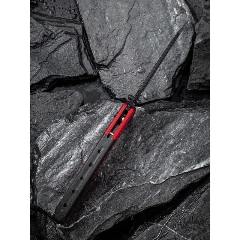 Виробник пропонує на вибір три варіанти відкриття конструкції ножа Civivi Sentinel Strike: піддівання клинка пальцем за отвір, натискання на плавець фліпера або на двосторонній шпеник. Керамічні підшипники в осьовому вузлі є гарантом граничного плавного руху леза, а замок button lock міцно фіксує відкритий клинок, підвищуючи безпеку експлуатації.