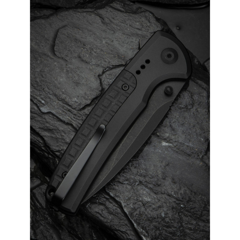 В основі осьового вузла знаходяться підшипники з міцної кераміки, які роблять відкривання конструкції миттєвим. Щоб дістати клинок з руківʼя, можна використовувати плавець фліпера або шпеник. При відкритті ніж фіксується замком Button Lock з пружною кнопкою — її легке натискання вивільняє лезо та дозволяє швидко закрити інструмент однією рукою.