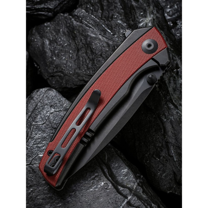 Контрастна вставка зі склопластику G10 на сталевому руківʼї дозволяє міцно утримувати інструмент. Розташування кліпси можна адаптувати під індивідуальний стиль носіння, оскільки вона є двопозиційною. Вага моделі Teraxe складає 139.7 грамів.