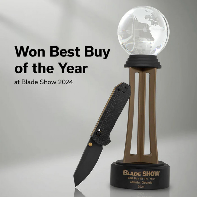 - Руків’я з грубої мікарти (Burlap Micarta). Має виражену шорстку текстуру для міцного хвату навіть мокрими руками. Стильний вигляд доповнюють лайнери кольору Desert Tan.