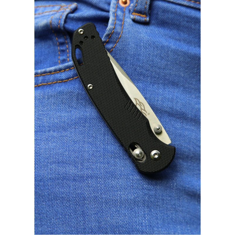 Складаний ніж завжди зручно використовувати на природі, адже він легко поміщається в кишені, а лезо під час перенесення розміщене в безпечному положенні. Однак модель Firebird F753M1 стала популярною не тільки завдяки цьому. Цей ніж є універсальним за призначенням клинком, який відмінно пристосований для туристичних цілей, поїздок на риболовлю чи полювання, будь-яких подорожей і навіть занять екстремальними видами дозвілля і спорту. Лезо моделі Firebird F753M1 зроблено нержавіючим, для чого використовується сталь 440С. Здатність цього металу залишатися якісним навіть в умовах частого контакту з водою чудово об'єднана з можливістю його загартування до 58 HRC. В результаті, ніж Firebird F753M1 вимагає мінімального догляду за собою і нечастого заточування. Його клинок цілком гладко заточений і виконаний у формі clip-point з трохи скошеною верхньою частиною, яка нагадує фальшлезвие. Довжина клинка цього ножа становить 77 мм.