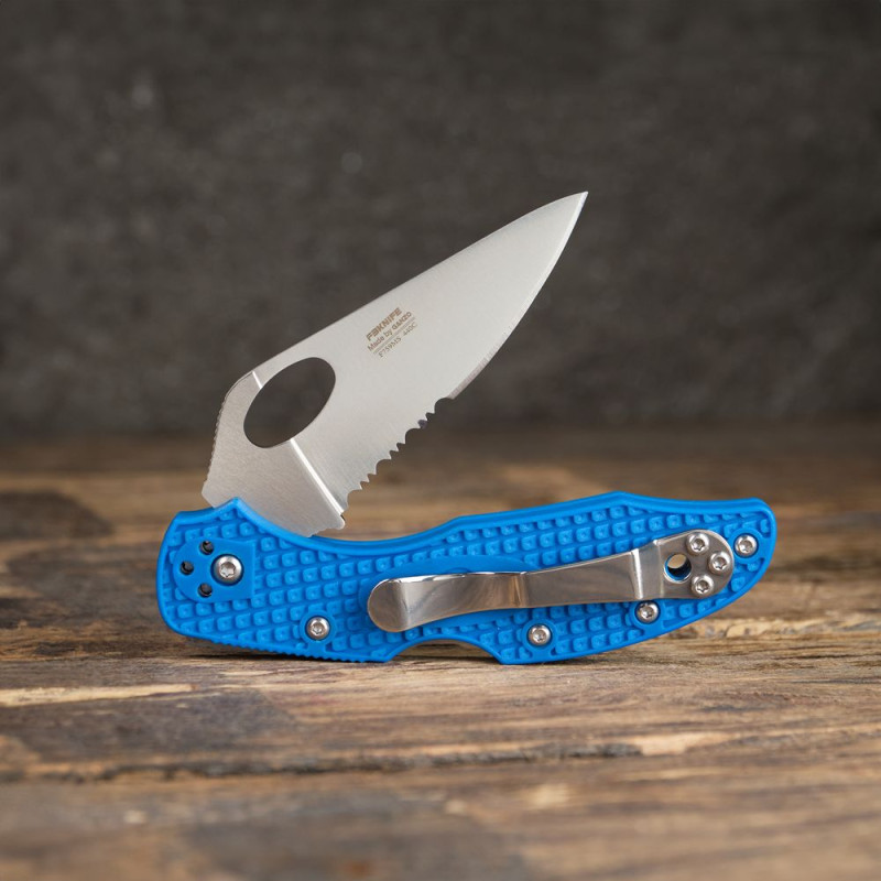 Клинок даної моделі має комбіноване лезо: половина леза ближче до основи має серрейторную заточку, а друга половина — пряму заточку. Класична пряма заточка-це універсальне лезо для більшості повсякденних завдань, в яких необхідний рівний рез, в той час як серрейтор відрізняється більш тривалим утриманням гостроти і призначений для виконання специфічних завдань. Зубчаста кромка ефективно справляється з різом волокнистих матеріалів, таких як стропи, мотузки і канати, а також дозволяє швидко зрізати дрібні гілки або заточити дерев'яні кілки.