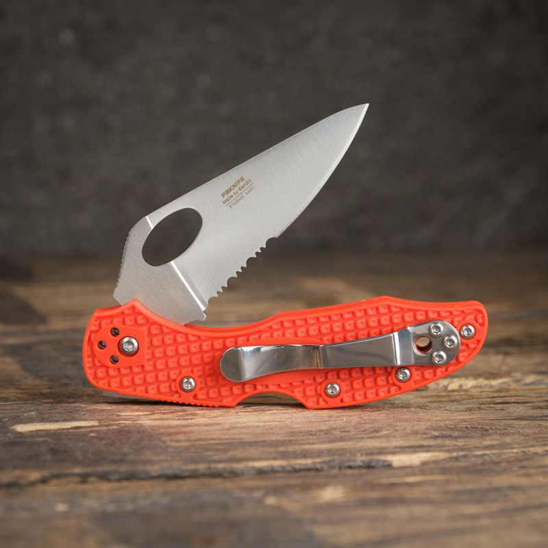 Клинок даної моделі має комбіноване лезо: половина леза ближче до основи має серрейторную заточку, а друга половина — пряму заточку. Класична пряма заточка-це універсальне лезо для більшості повсякденних завдань, в яких необхідний рівний рез, в той час як серрейтор відрізняється більш тривалим утриманням гостроти і призначений для виконання специфічних завдань. Зубчаста кромка ефективно справляється з різом волокнистих матеріалів, таких як стропи, мотузки і канати, а також дозволяє швидко зрізати дрібні гілки або заточити дерев'яні кілки.