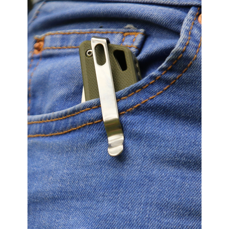 Важливою частиною ножа є вбудований в нього ніж. Конкретно для цієї моделі використовується Axis Lock. Цей замок вбудований в ручку, прикрашену накладками, які являють собою дві пластини з G10. Такий матеріал добре піддається обробці, а тому ручка ножа зручно лежить в руці. А для зручного носіння ножа, на рукоятці є невелика притискна кліпса, становище якої не змінюється.