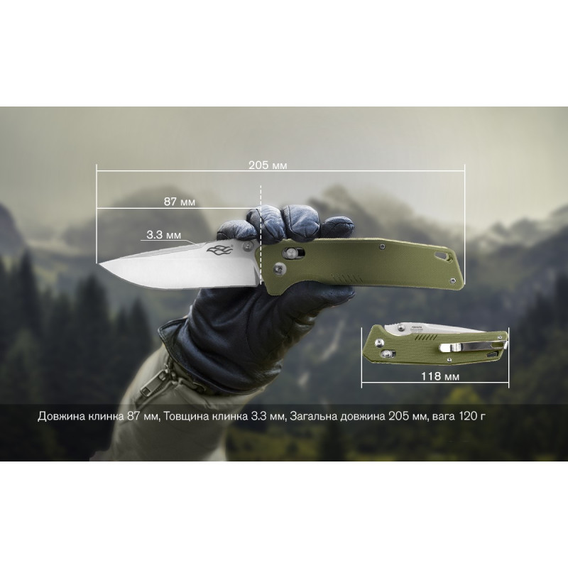 - повна довжина ножа FB7601 — 205 мм, а розмір клинка — 87 мм;