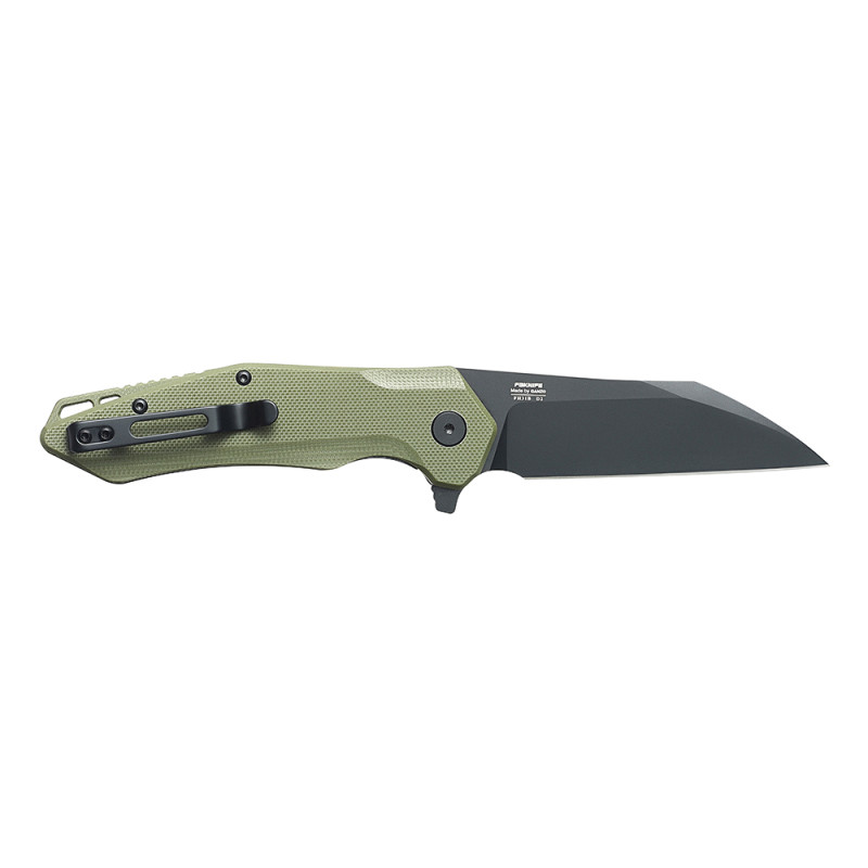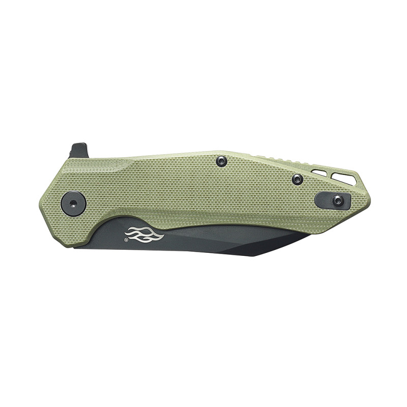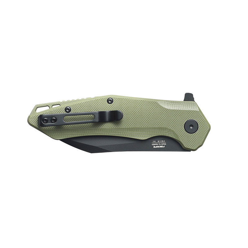 Замок Liner lock гарантує простоту, зручність та безпеку. Ручка практична, ергономічна, і навіть у мокрій долоні не вислизатиме, тож інструмент не травмує користувача. Склотекстоліт G10 ідеальний як матеріал у компактних EDC-ножах, він стійкий до зносу, механічних впливів, хімічних реагентів, температури, вологи, а також добре фарбується. Остання обставина дозволяє проводити експерименти з дизайном ножів.