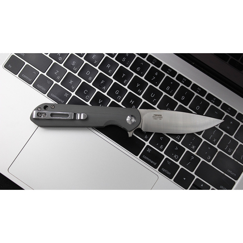 Ніж FH41 відразу сподобався всім, як тільки з'явився на ринку. Він універсальний і міцний, виробник продумав кожну дрібницю. Форма клинка класична – drop-point, з приспущеним до вістря обухом. Виготовляється він із високоякісної сталі D2 з твердістю 60 HRC. Фіксує клинок у закритому і відкритому положенні механізм Flipper, який показує високу надійність.