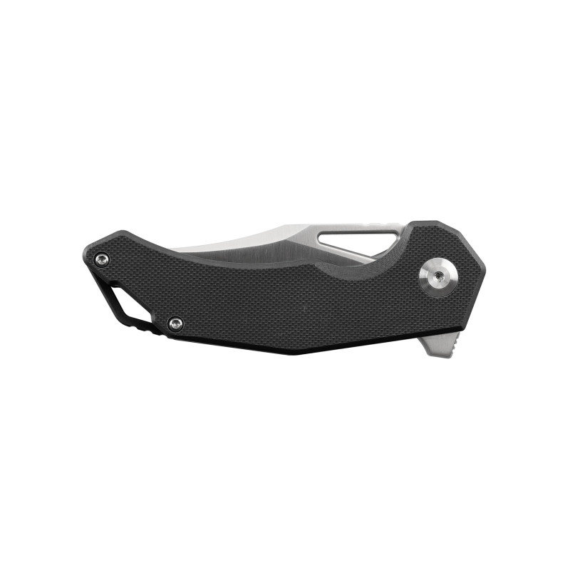 Клинок витягується як за допомогою незначного отвору під великий палець біля основи, так і за рахунок фліппера з протиковзкими пропилами. Фіксується лезо за рахунок наявності сталевого замка типу Liner-Lock.