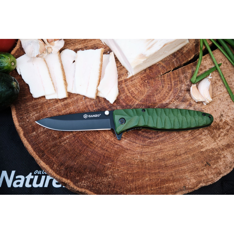 Ніж Ganzo G620 являє собою складну модель, розраховану на використання в туристичних умовах. Його відмінною рисою є чорний клинок з заточенням прямого типу. Крім того, що такий ніж привертає погляд кожного цінителя якості Ganzo, чорний колір леза грає ще і практичну роль. Справа в тому, що він зовсім не мерехтить.