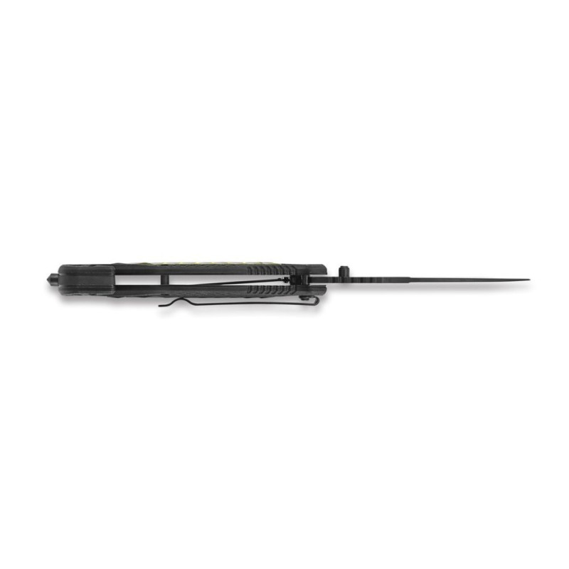- однопозиційна кліпса на кишеню закріплена на руківʼї ближче до основи клинка;